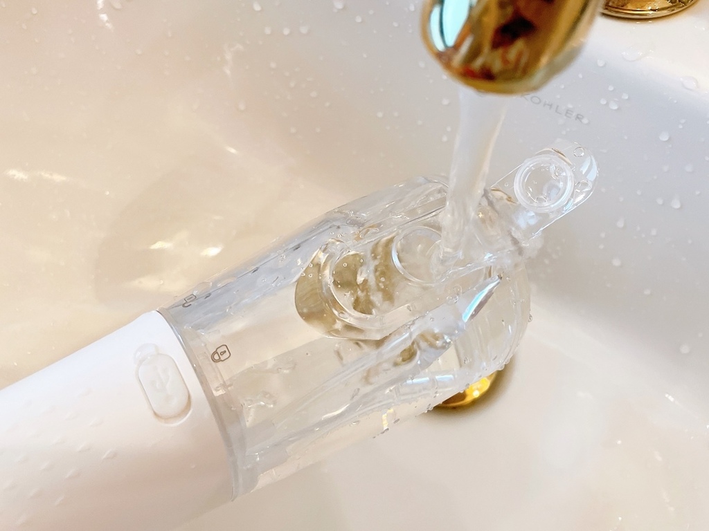 而且機身有防滑設計,弧度完美好握順手,飯後沖牙無負擔 !
