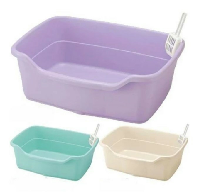 因為不知道飼養的貓咪喜歡哪種型態的貓砂盆,就從這大空間開放式貓砂盆開始吧,價格很好入手也很好清潔,外型和顏色看起來也很柔和
