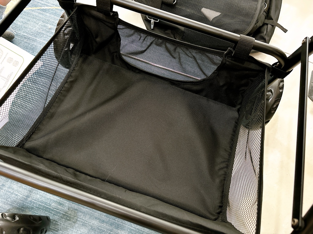 推車模式下方還有超大空間置物籃,可以放寵物用品或是我們的媽媽包