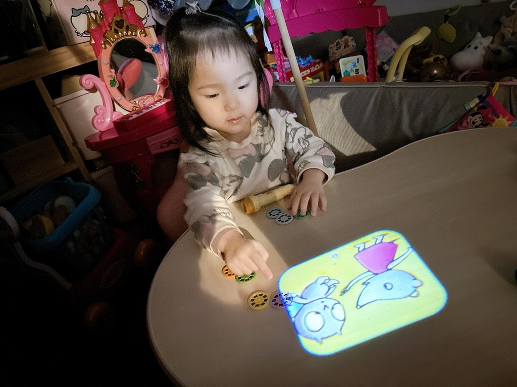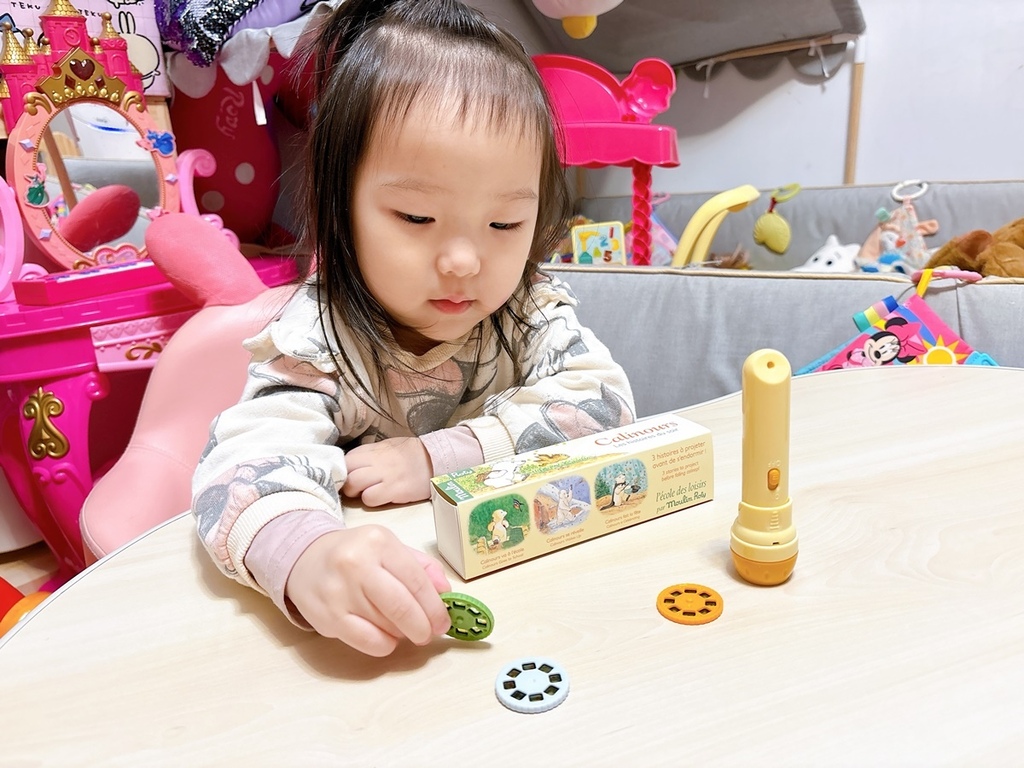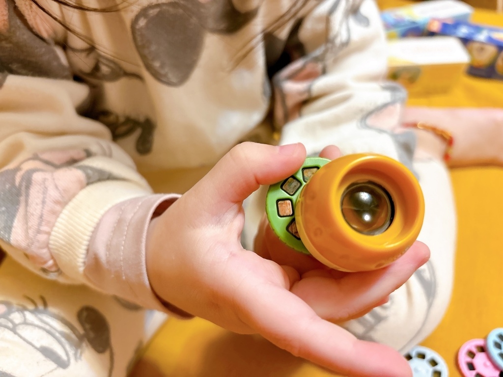 投影片很能夠吸引寶貝目光,現在每天晚上睡覺前,我都會看圖說故事給小寶貝聽