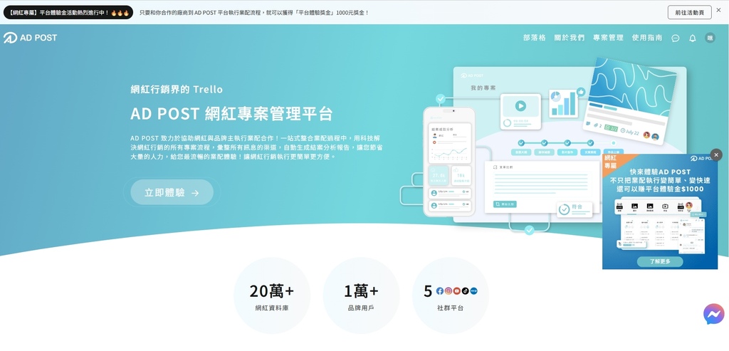 接下來,這邊就和大家分享 AD POST 網紅行銷專案管理平台使用心得和 AD POST 平台優點,快來看看囉![]()