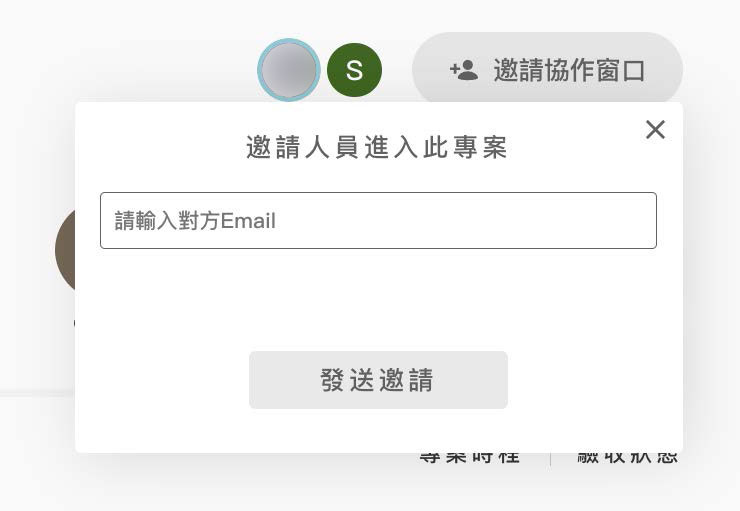 現在只要和你談好要合作的廠商,在平台邀請廠商協作,輸入 E - mail ,廠商將收到邀請信, 等廠商加入註冊後,廠商建立專案,就可以開始合作!