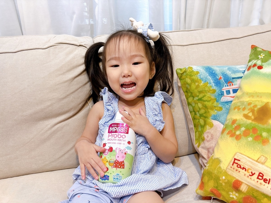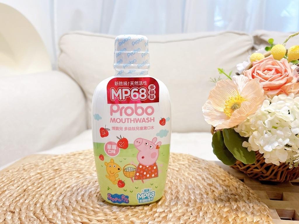這瓶漱口水同樣是佩佩豬包裝,吸引力滿分,草莓口味香氣自然,甜甜的很吸引人