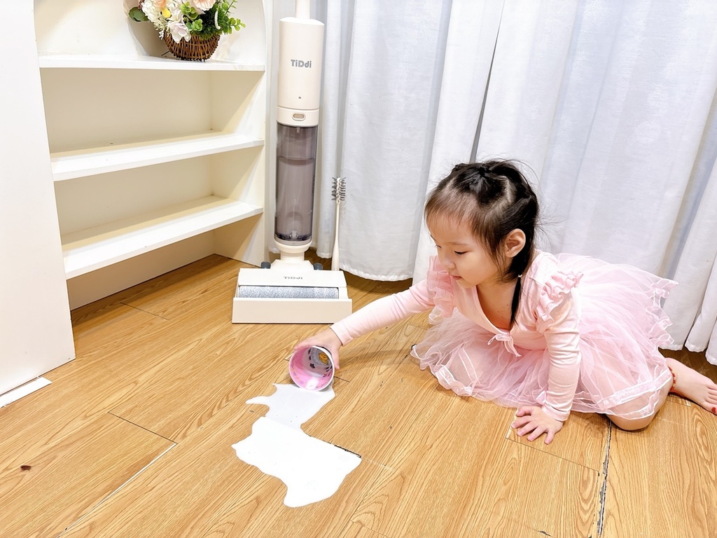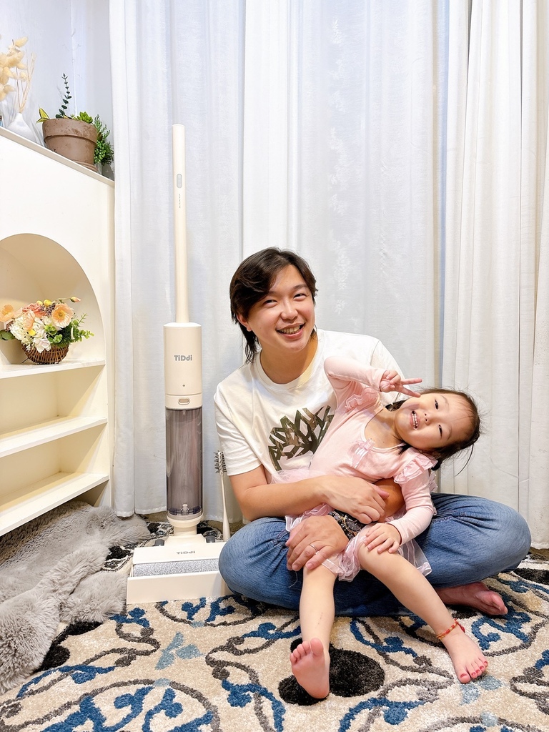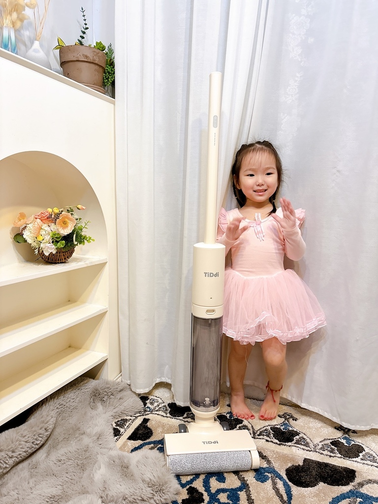 真的非常適合小孩+寵物家庭,現在清掃貓毛貓砂,都可以一口氣搞定,甜寶還會驚呼:「地板變乾淨了耶!」