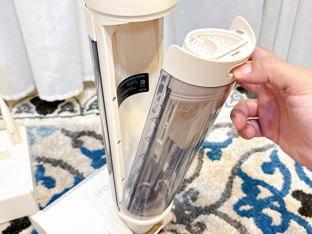 使用完畢後,把髒水倒掉,接著只要一鍵啟動自清潔模式,滾刷就會正反向高速轉動,搭配活水沖刷,把沾附的污漬統統洗掉