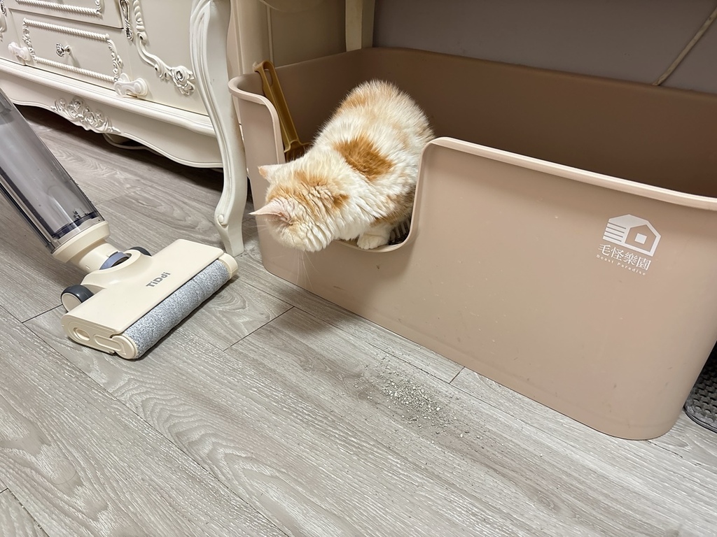 再加上我們家還有養貓咪,貓毛滿天飛,貓砂滿地跑,光靠傳統拖把打掃,真的會心很累