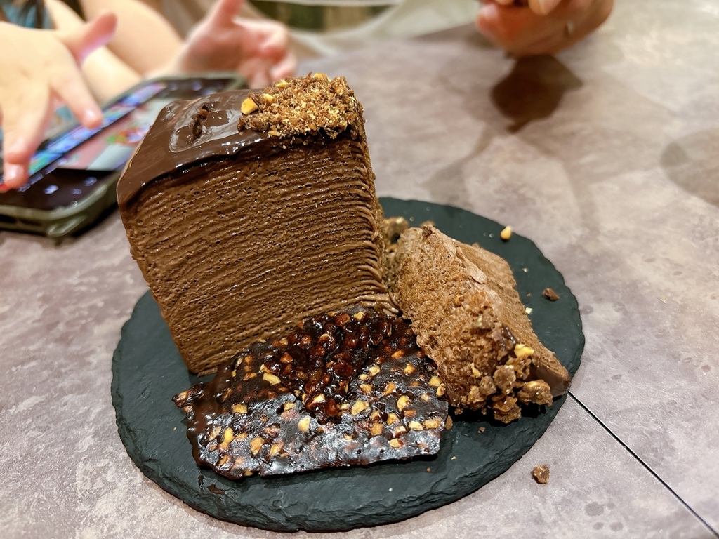 榛果巧克力 & 海鹽焦糖千層蛋糕都超讚,店內也有多種夢幻口味,建議一到店裡就要先點,才不會吃不到 !
