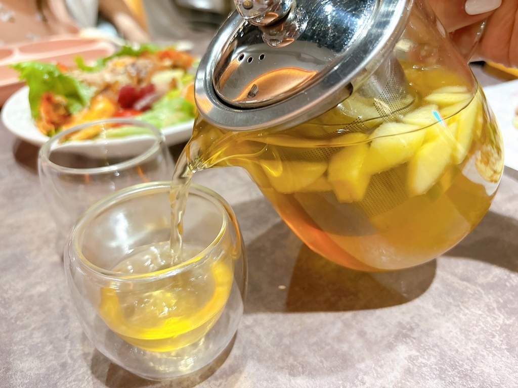 芙香蘋果茶我也很愛,用整片蘋果果肉沖泡,清甜果香融合茶底,熱熱喝很療癒,配甜點也非常適合