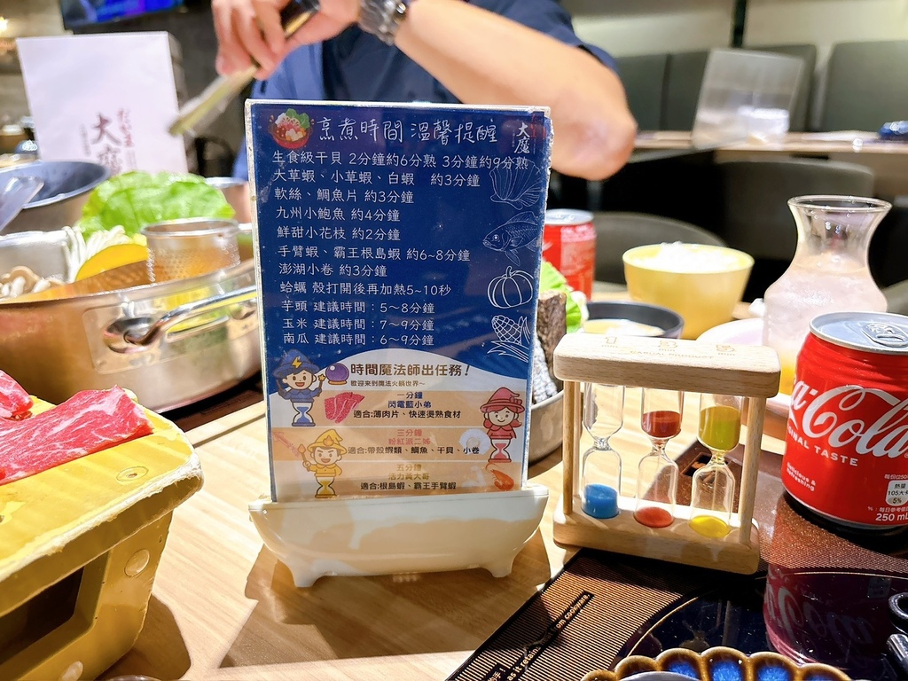 大魔鍋物還特別提供一張「烹煮時間溫馨提醒卡」,搭配桌邊沙漏讓你輕鬆掌握每種食材的最佳涮煮時間