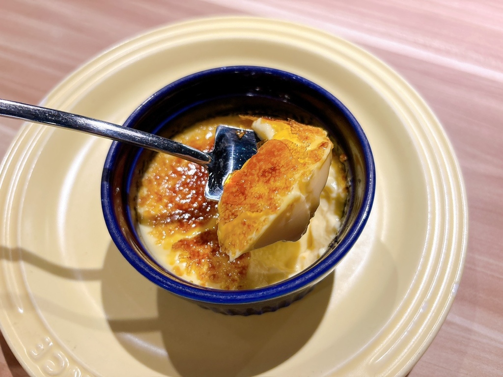 布蕾口感綿密,焦糖脆皮一敲下去超療癒,甜寶吃得嘴角沾滿奶香,我也搶著吃 !