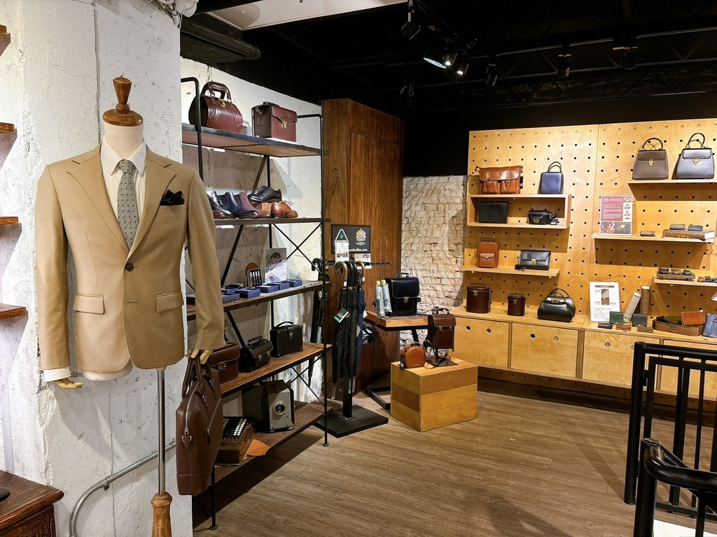 林果良品店內每一個角落都經過巧妙設計,像是陳列著皮革包包展示架,甚至還有皮革筆記本、皮帶、領帶這些選物